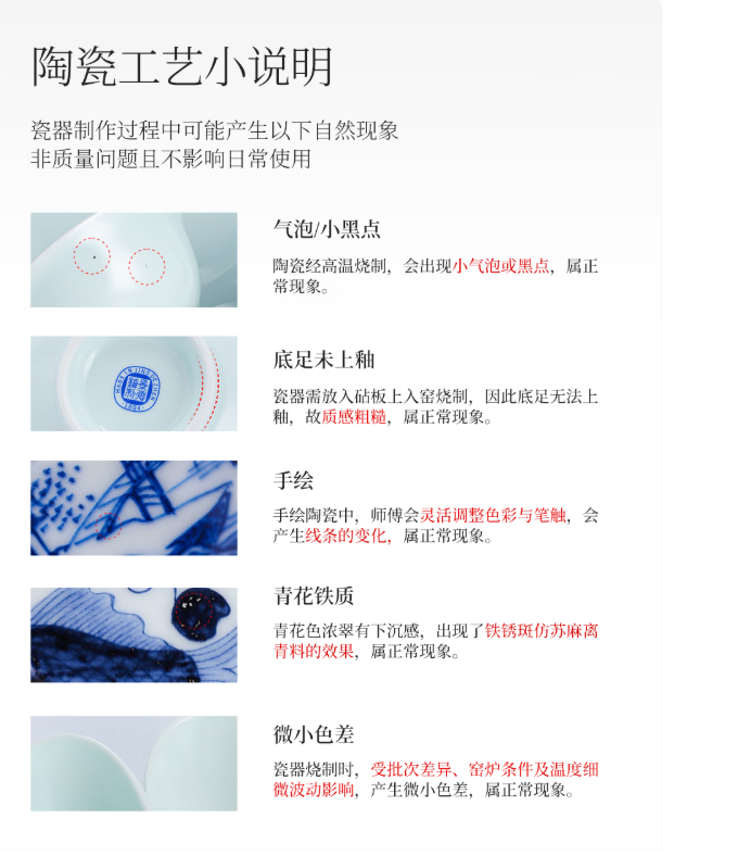 瓷質純淨,質地細膩、透光性好白如玉,色澤亮麗、晶瑩剔透
