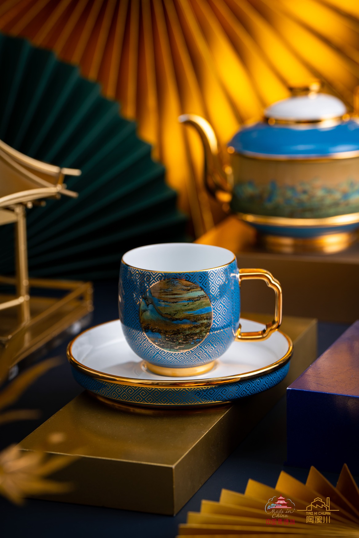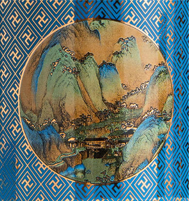 一向被視為宋代青綠山水畫中的鉅作傑作更是中國十大傳世名畫之一, 當青綠山水交融於琺瑯器的孔雀鈷藍, 這是古典渴望著, 另一種古典的彼此回應 。