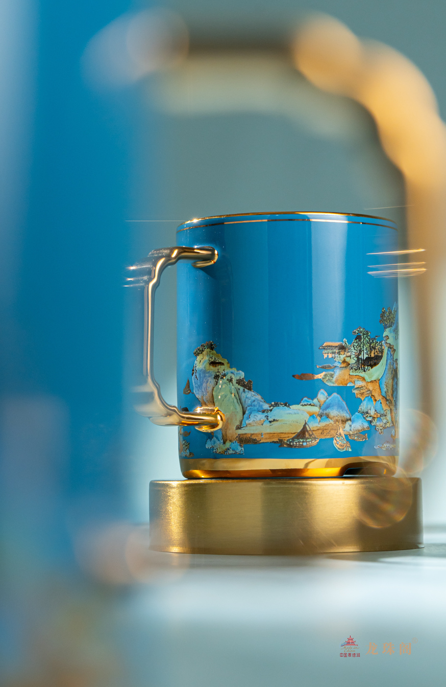 一向被視為宋代青綠山水畫中的鉅作傑作更是中國十大傳世名畫之一, 當青綠山水交融於琺瑯器的孔雀鈷藍, 這是古典渴望著, 另一種古典的彼此回應 。