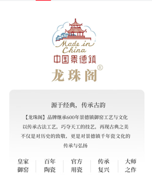 源自於經典,傳承古韻 【龍珠閣】品牌繼承600年景德鎮禦窯工藝與文化以傳承古法工藝,巧奪天工的技藝,再現古典之美不僅是對歷史的致敬,更是對景德鎮千年瓷文化的傳承與弘揚