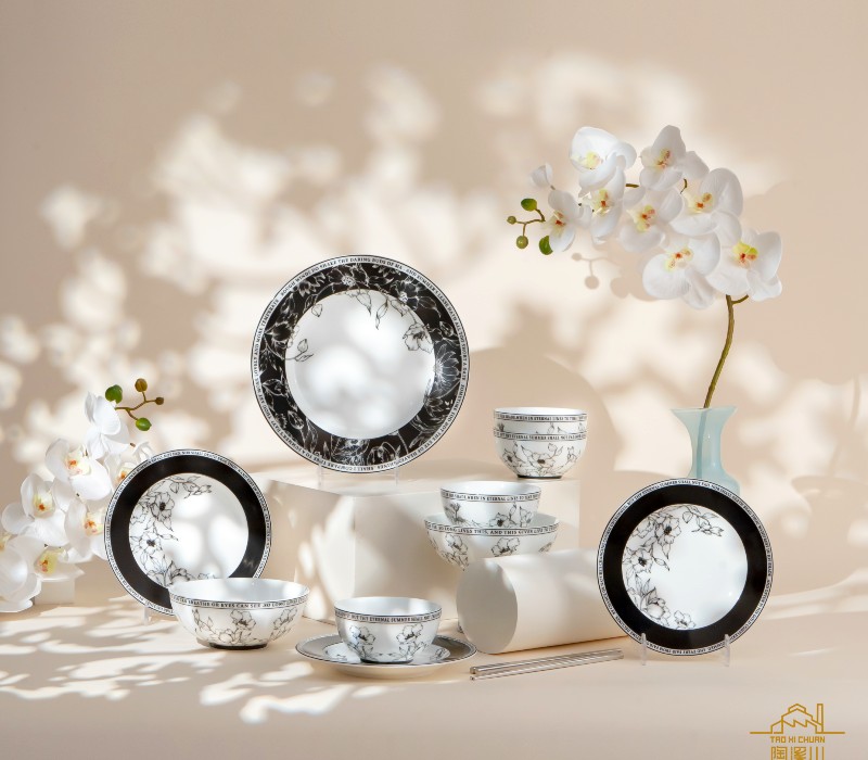 該系列是以文藝復興時期的文學巨匠威廉·莎士比亞創作的藝術故 事為藍本,從陶溪川絢麗的水生植物中汲取靈感,將姿態妙曼的花 朵綻放於瓷器之上。以黑白交織的純粹色彩,勾勒出柔和夜幕下映 照花叢的景象。